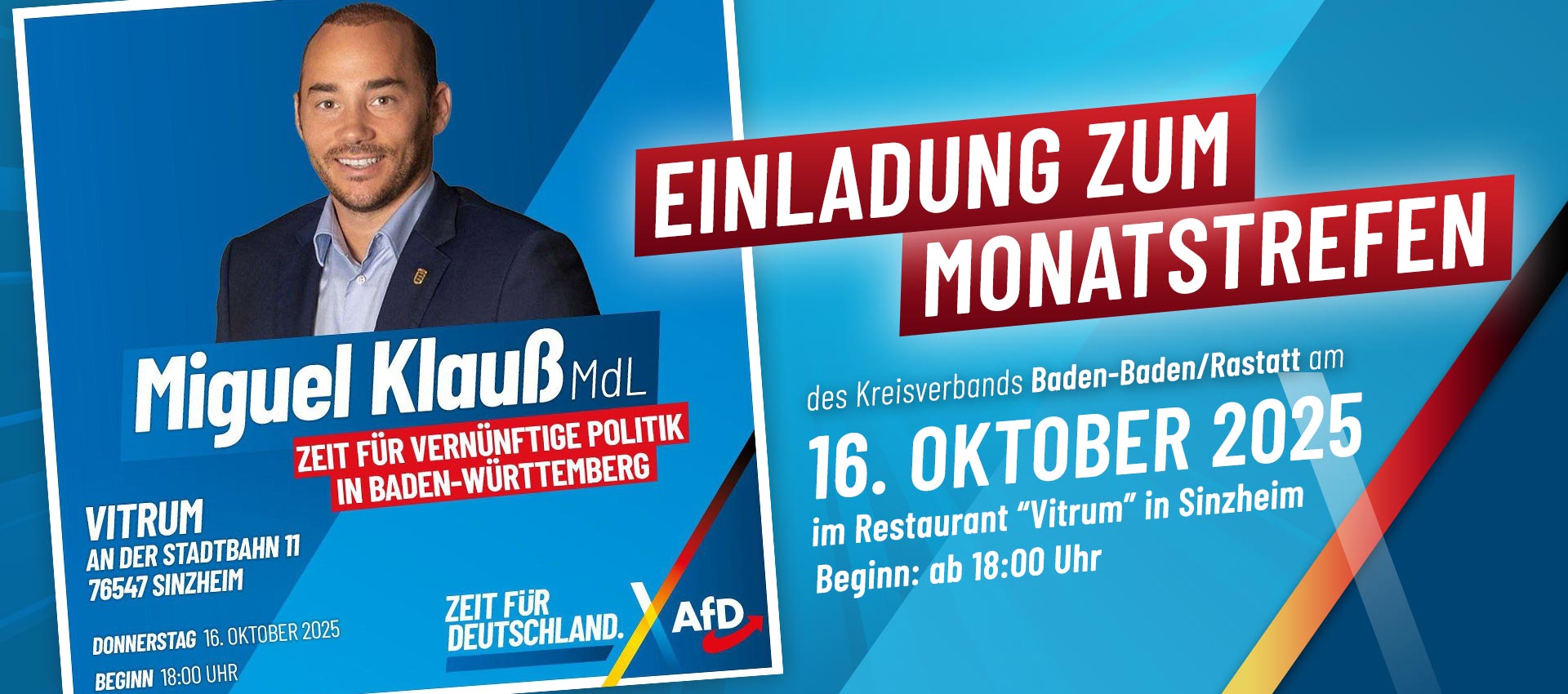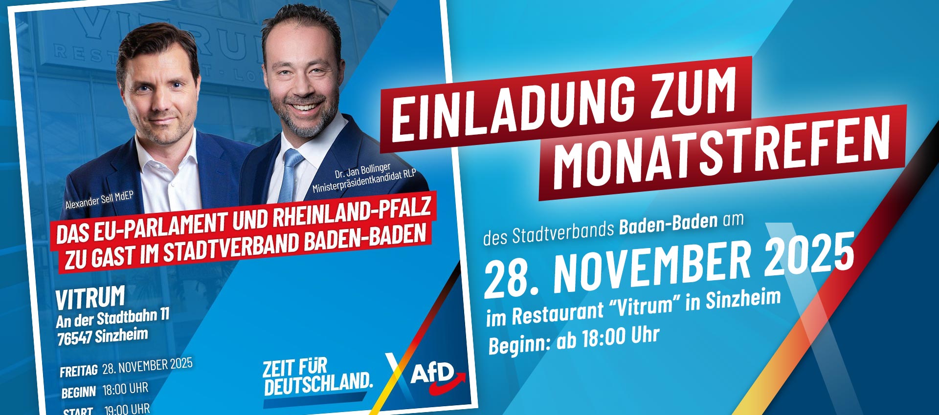 Bei der Bundestagswahl 2025 errang die Alternative für Deutschland mit 20,8 Prozent der Stimmen ein historisches Rekordergebnis und ist somit zweitstärkste Kraft im Bund. Unser Direktkandidat für Rastatt/Baden-Baden, Alexander Arpaschi, holte mit 22,2 Prozent sogar ein überdurchschnittliches Ergebnis und darf sich über einen Sitz in der AfD-Fraktion des neu gewählten Bundestags freuen.